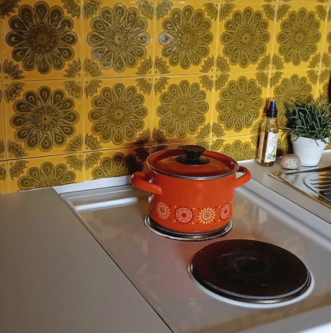 Vierailija tiskaa käyttämänsä astiat tai käyttää kertsikoita (löytyy kaapista).